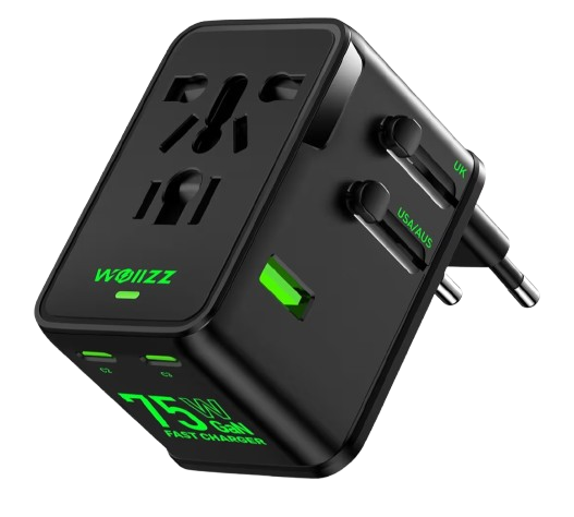 Stay powered anywhere in the world with this 75W Tiny Universal Travel Adapter, designed for fast and reliable charging on the go.