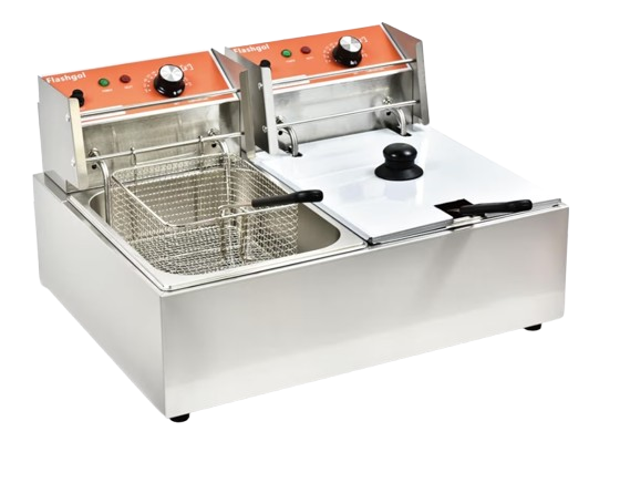 This Commercial Deep Fryer with Basket offers a generous 6–12L capacity, making it perfect for both home and small business use. Crafted from high-quality stainless steel, it ensures durability, corrosion resistance, and easy cleaning after every use. The fryer features an adjustable temperature control, allowing precise heat settings to suit different types of food such as fries, chicken, fish, or doughnuts. Equipped with a built-in timer, it helps prevent overcooking and ensures consistent results every time. The removable frying basket with a heat-resistant handle provides safety and convenience during cooking. Its secure lid minimizes oil splatter and keeps your kitchen clean while maintaining optimal frying temperature. The fryer also includes a viewing window for easy monitoring of the cooking process. Non-slip feet keep the unit stable on countertops, ensuring safe operation. Designed for efficiency and performance, this fryer heats quickly and maintains steady oil temperature for perfect crispness. Whether for home kitchens, snack bars, or small restaurants, this deep fryer delivers professional frying results with ease.