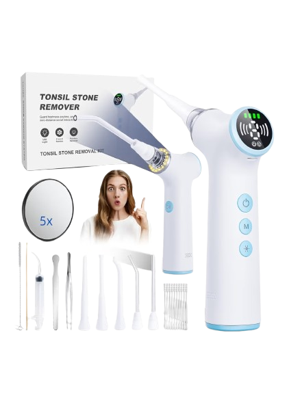 The Electric Tonsil Stone Remover Vacuum is a convenient and hygienic device designed to help safely remove tonsil stones from the comfort of your home. Using gentle suction technology, it effectively extracts debris and buildup from tonsil crevices without causing discomfort. Its ergonomic and lightweight design ensures easy handling, allowing for precise control during use. Equipped with multiple suction levels, it can be adjusted to suit different sensitivity needs for a more personalized experience. The soft, medical-grade tips provide a safe and gentle touch, minimizing irritation to delicate areas. Its rechargeable battery offers long-lasting use, making it ideal for regular oral care routines. The detachable components allow for easy cleaning and maintenance, ensuring proper hygiene after every use. Compact and portable, it is perfect for travel and everyday convenience. This device helps improve oral hygiene and reduce bad breath caused by tonsil stones. Overall, the Electric Tonsil Stone Remover Vacuum is an effective and user-friendly solution for maintaining better throat and oral health.