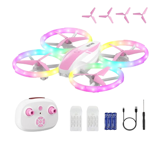 The Mini Drone for Girls and Beginners with Fancy LED Lights is a stylish and fun quadcopter designed to bring excitement and creativity to every flight. β¨ With its vibrant color-changing LED lights, this drone lights up the sky and adds a magical touch to nighttime adventures. Itβs lightweight, portable, and easy to control, making it perfect for first-time flyers, kids, and teens who want to explore the joy of flying. The one-key takeoff and landing feature ensures smooth operation, while the headless mode helps beginners maintain easy control. Equipped with 360Β° flips, altitude hold, and stable hover, it delivers both fun and steady performance. The durable propeller guards protect the drone during bumps and crashes, ensuring safety during indoor or outdoor use. With rechargeable batteries and quick charging, you can enjoy longer flying sessions with minimal downtime. Its cute, feminine design and LED sparkle effect make it a perfect gift for girls who love tech and style. Whether used for fun flights, tricks, or light shows, this mini drone combines beauty, simplicity, and performance in one dazzling package. ππ
