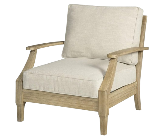 This wood cushioned lounge chair blends timeless design with modern comfort, making it a perfect addition to any living space. Crafted from high-quality, durable wood, it showcases a sturdy frame with elegant grain patterns and a smooth finish. The wide armrests and gently sloped backrest offer ergonomic support, encouraging long hours of relaxation. Soft, thick cushions upholstered in premium fabric provide a plush seating experience. The neutral tones of the upholstery complement the natural wood, creating a warm and inviting aesthetic. Ideal for both indoor and covered outdoor settings, this chair is versatile and stylish. Its compact footprint makes it suitable for smaller rooms while still offering ample comfort. The refined craftsmanship and attention to detail enhance its appeal, giving it a luxurious yet grounded look. Whether placed in a reading nook, lounge area, or sunroom, this chair invites you to unwind in style.